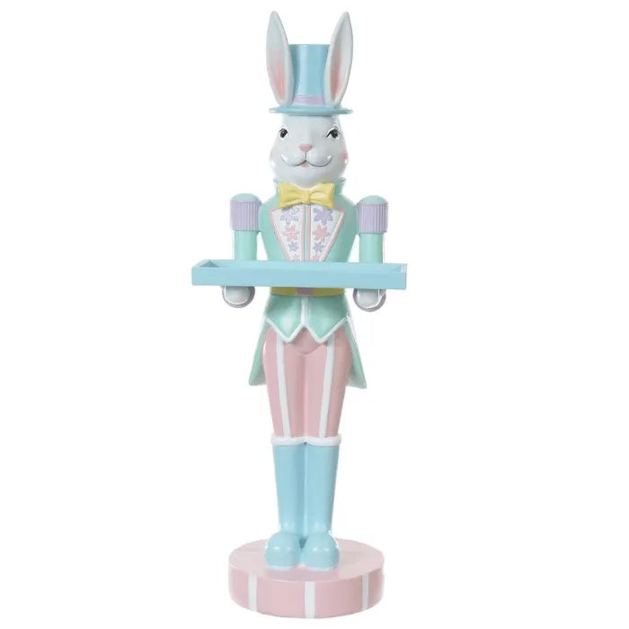 A bandeja integrada torna a peça ainda mais versátil, ideal para apoiar ovos de chocolate, doces, bombons ou pequenos enfeites, sendo perfeita para mesas postas, aparadores, buffets e vitrines temáticas. Com 46 cm de altura, o Coelho Gaston se destaca como ponto focal da decoração, encantando adultos e crianças.