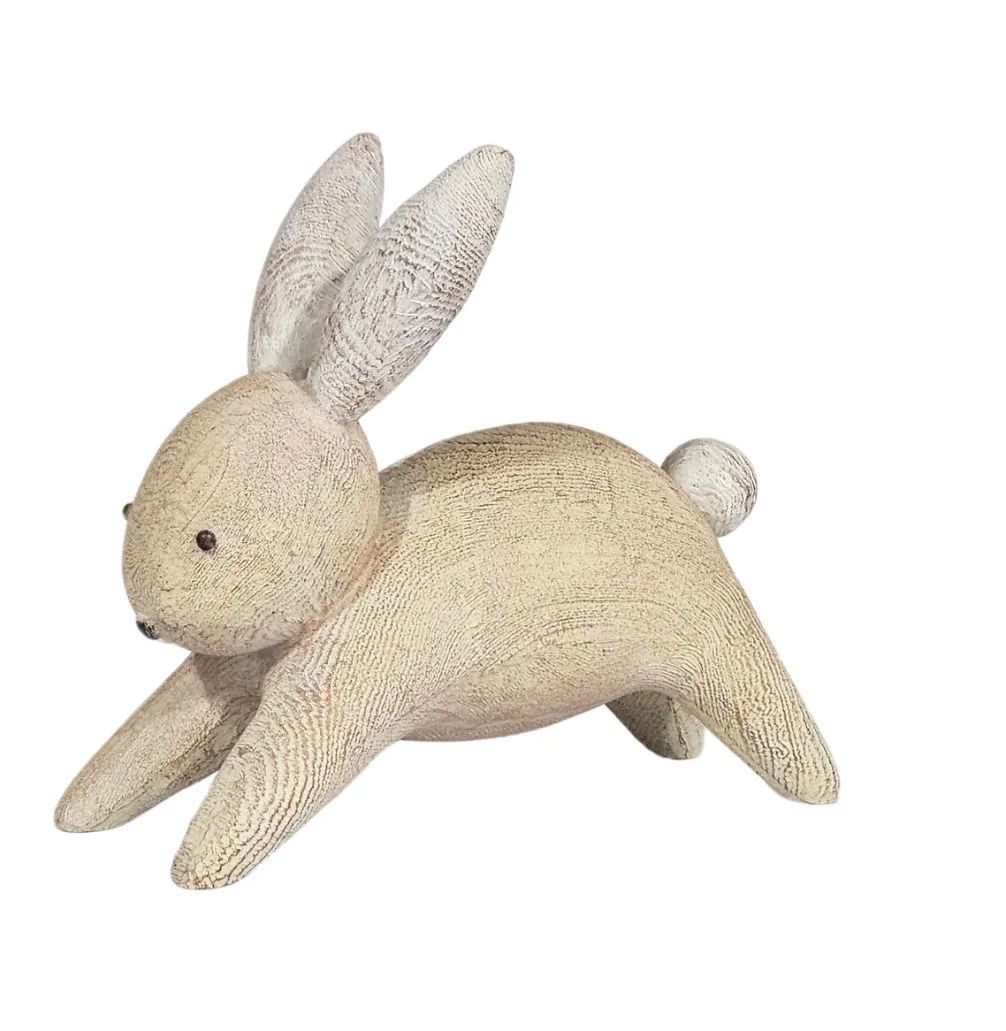 Coelho em resina com acabamento amadeirado.