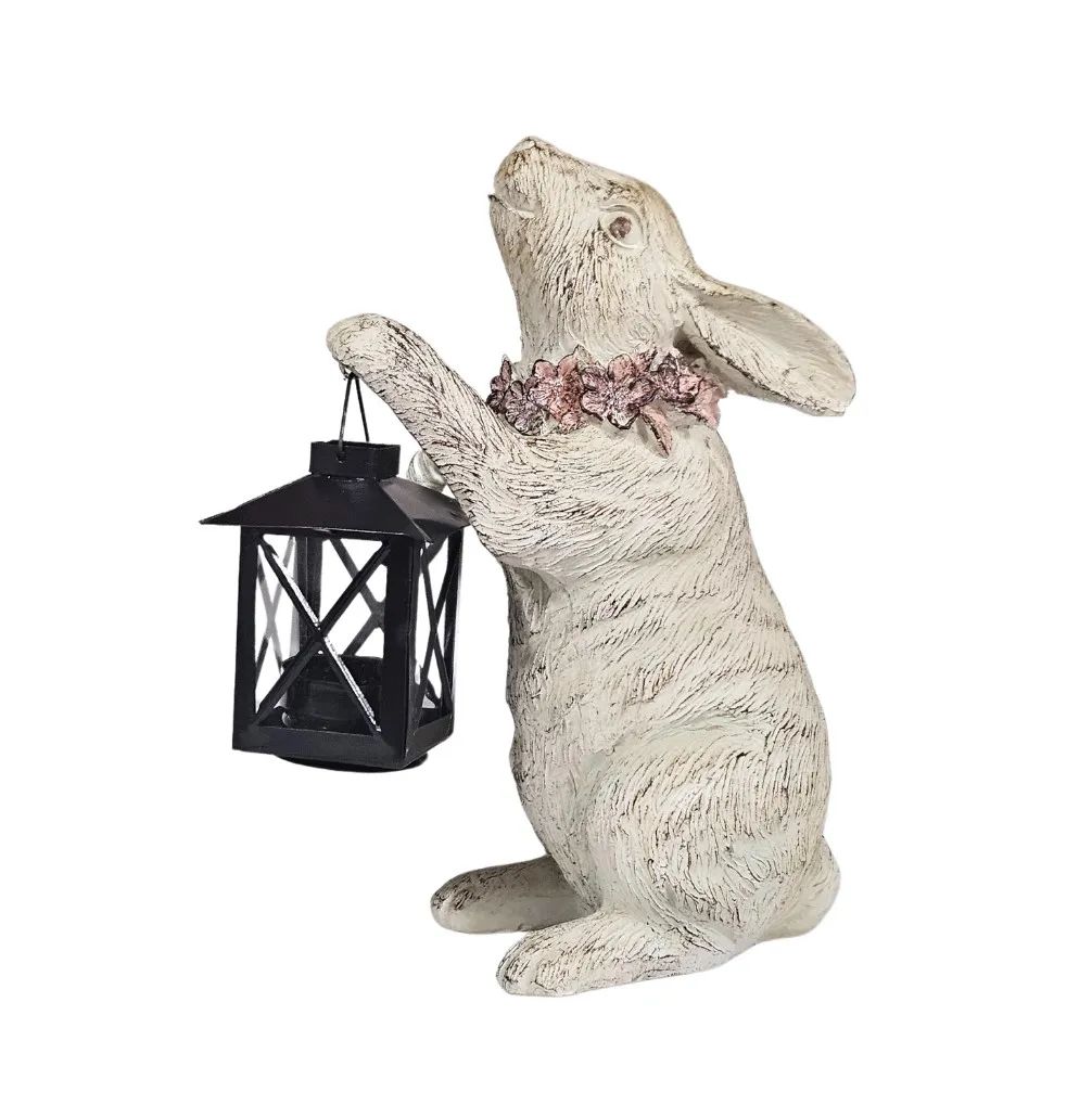 Encante sua decoração com este coelho decorativo em resina, uma peça charmosa e delicada que transmite aconchego e elegância. O coelho aparece em posição ereta, segurando uma lanterna decorativa, trazendo um toque lúdico e romântico ao ambiente. O acabamento em tom neutro com detalhes sutis realça a textura da peça, tornando-a ideal para composições sofisticadas e acolhedoras.