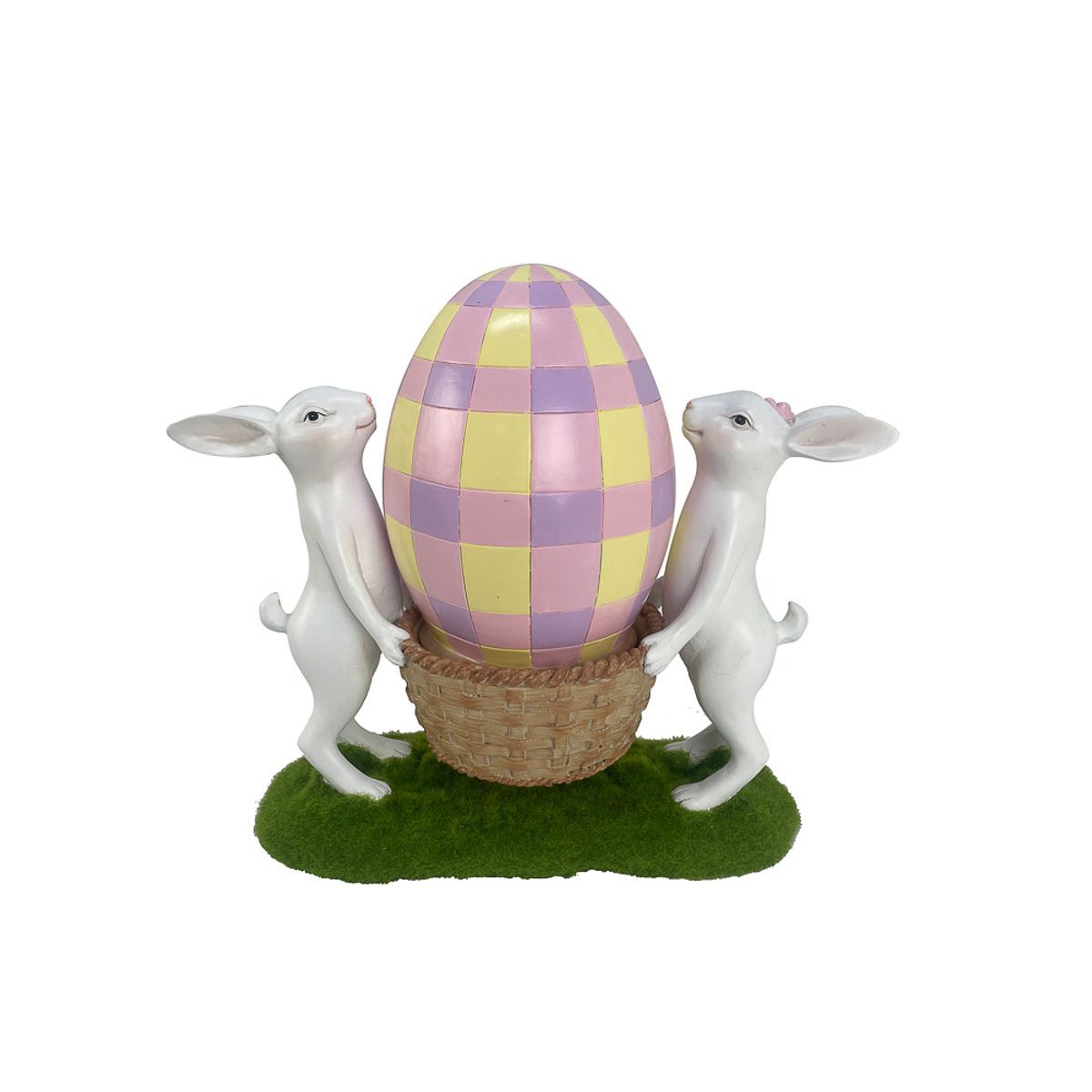 Os Coelhos Brancos com Ovo Decorativo em Resina formam uma peça encantadora e sofisticada para a decoração de Páscoa. Produzidos em resina de alta qualidade, os coelhos apresentam acabamento delicado e sustentam um ovo decorativo em tons pastéis xadrez, apoiado em uma base que remete à grama natural. Ideal para decorar mesas, aparadores, vitrines, halls de entrada ou composições temáticas, trazendo charme, suavidade e elegância ao ambiente.