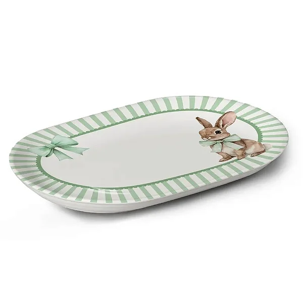 Produzida em cerâmica de alta qualidade, a travessa oferece resistência, acabamento refinado e versatilidade, sendo ideal para servir doces, bolos, chocolates ou pratos salgados durante a Páscoa.